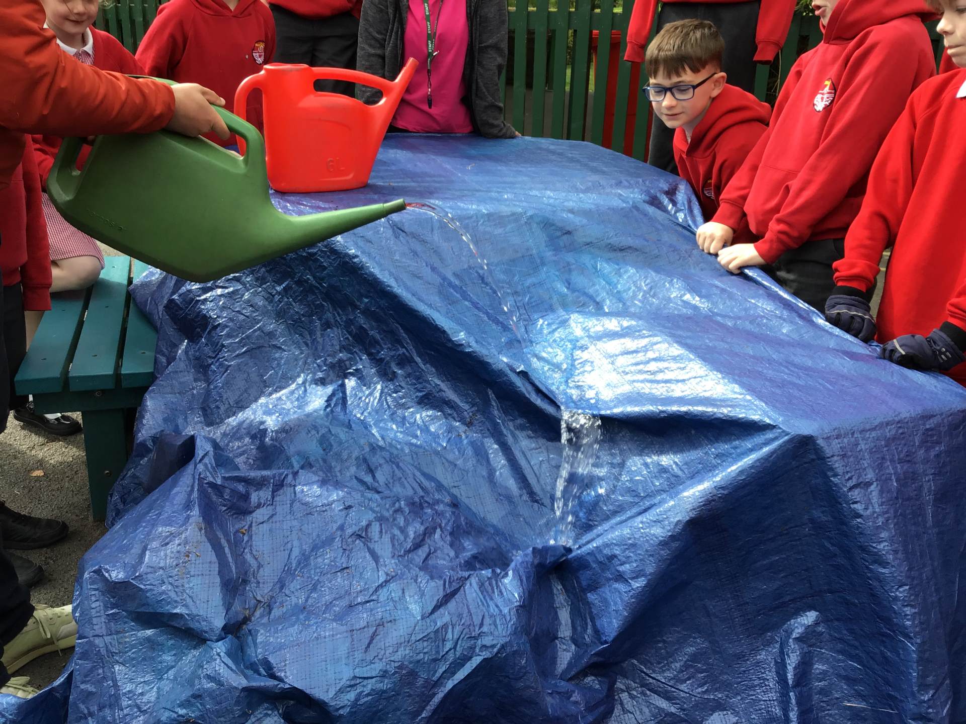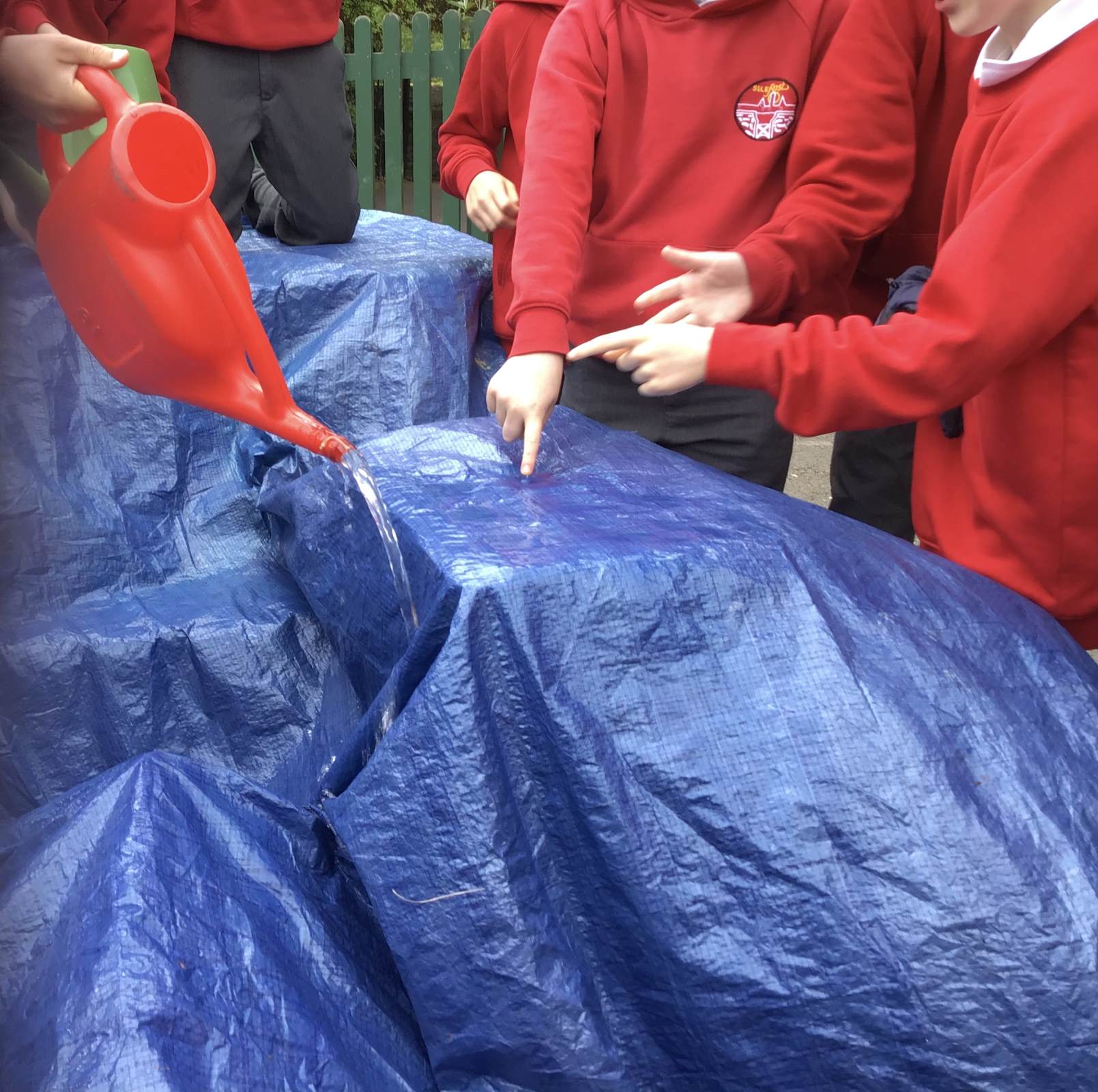 This week we have been outside to look at the features of rivers. For this we created a model of a landscape and poured water onto it to show how the water moved and if it made any features we could identify.