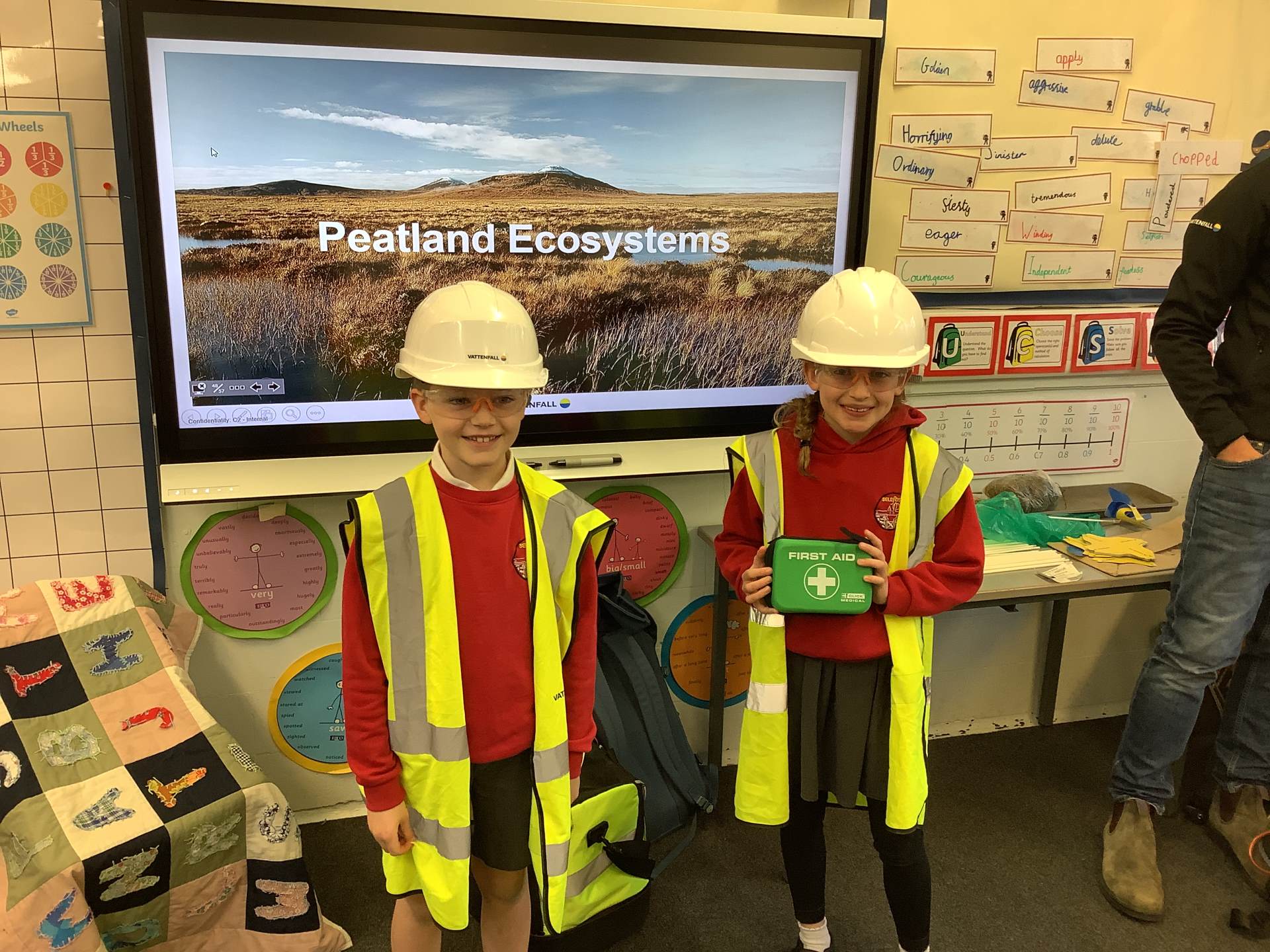Year 4 started the week with a visit from Matt who works for Vattenfall. Vattenfall specialise in creating wind turbines. We learnt about different types of renewable energy but particularly how we can harness the wind to create power. Matt explained to us what kind of jobs were available at Vattenfall and what goes into creating and installing the enormous wind turbines. The children asked some interesting questions regarding the differences between onshore and offshore wind turbines.