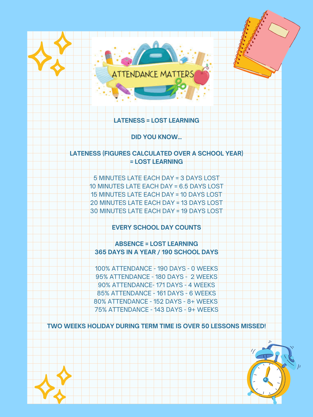 Attendance Matters - Lateness = Lost Learning
